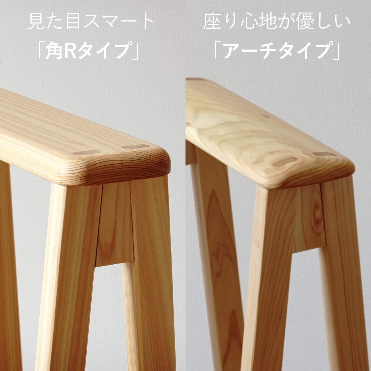 座面の断面形状をスマートな見た目になる【角Rタイプ】で仕上げています。